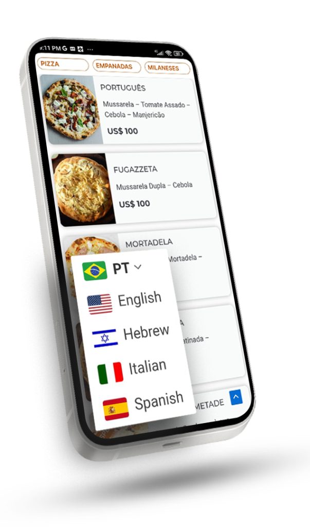Conecte-se com seus clientes e turistas com nosso menu online multilíngue.